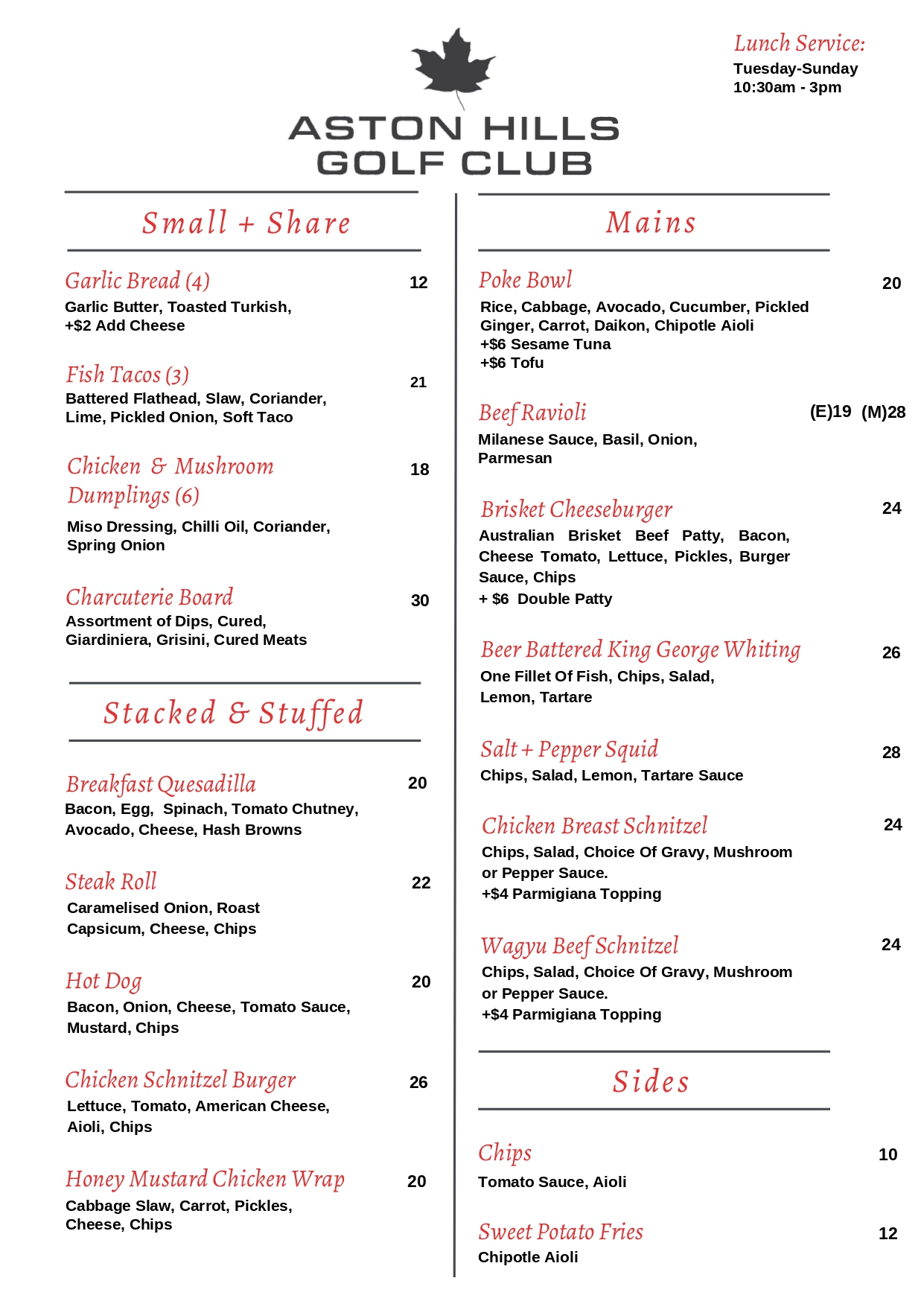 Looking to enjoy some of the food and drink that the Adelaide Hills are known and loved for? Come and enjoy breakfast or lunch at our clubhouse at the Aston Hills Golf Club in Mount Barker. We’re open to the public and have an excellent venue for you to enjoy the scenic views and natural beauty of our Mount Barker Golf Course.